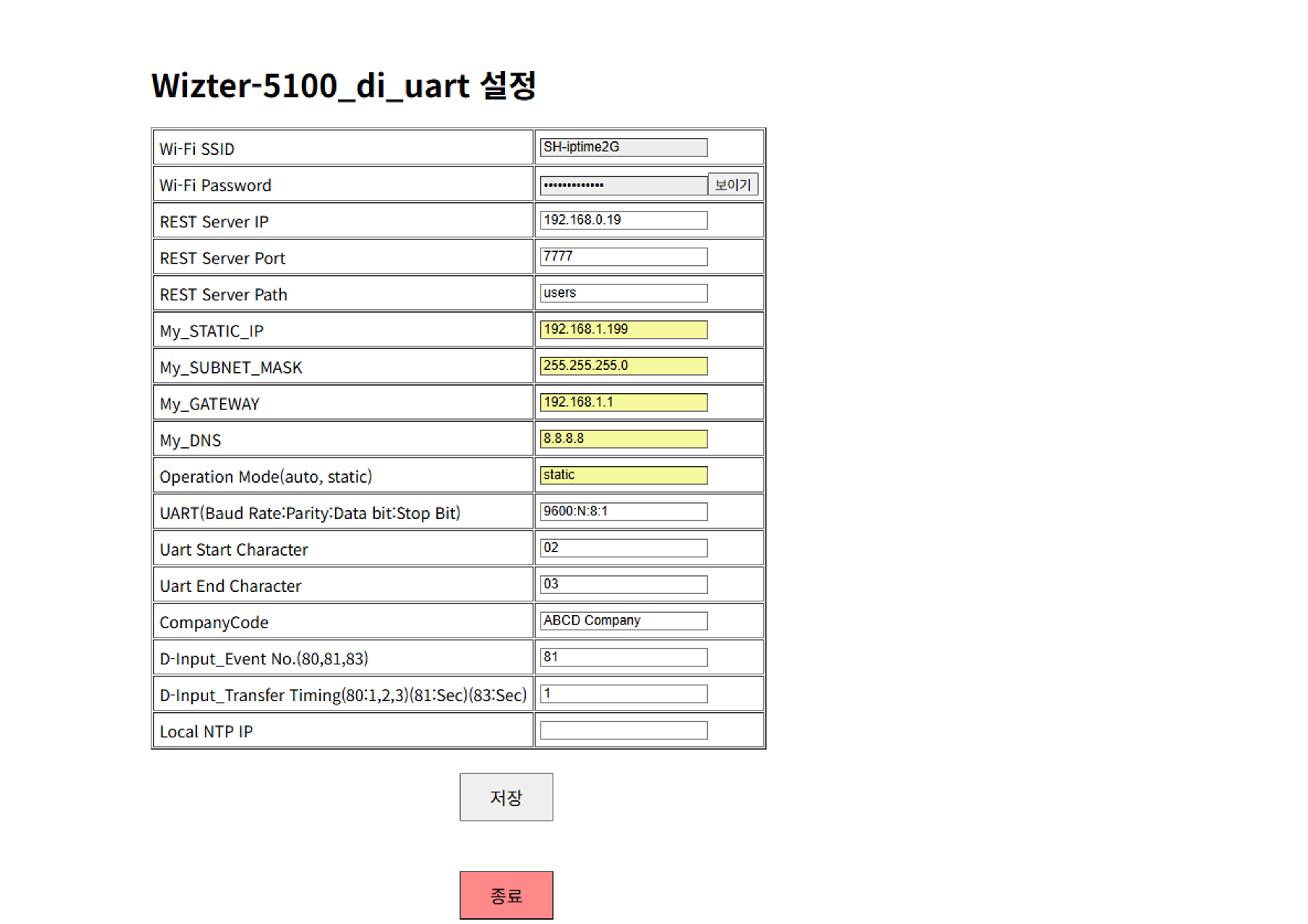 4) REST Server Port : Wizter-5100의 데이터를 수신할 REST서버 컴퓨터의 Port