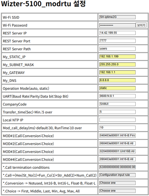 5) REST Server Port : Wizter-5100의 데이터를 수신할 REST서버 컴퓨터의 Path